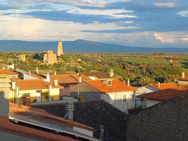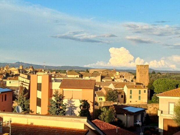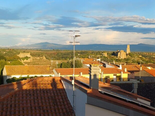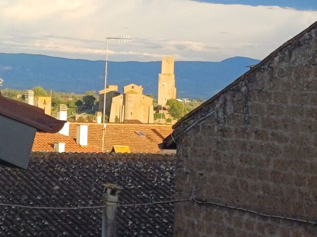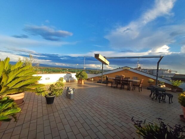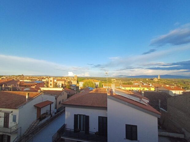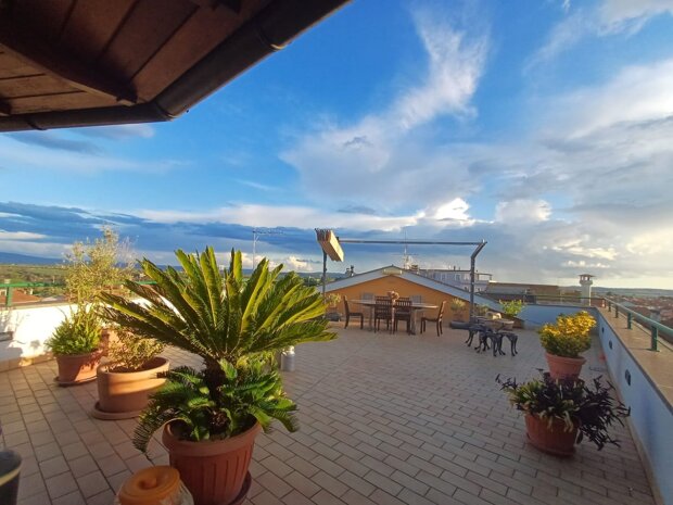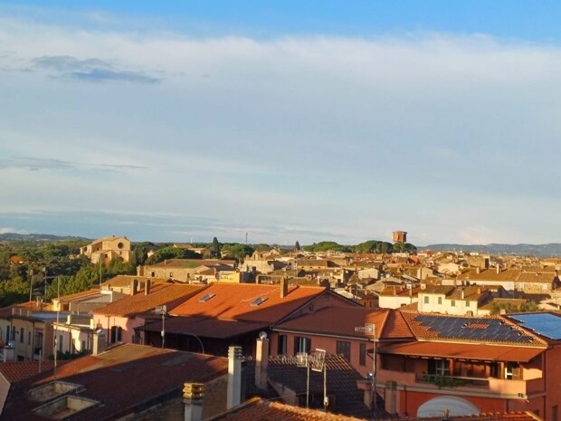 AL PIANO TERZO , TERRAZZO DI 90 MQ PANORAMICO CON VISTA SUL CENTRO STORICO , IN PARTICOLARE SULLA BASILICA DI SAN PIETRO E RIVELLINO.