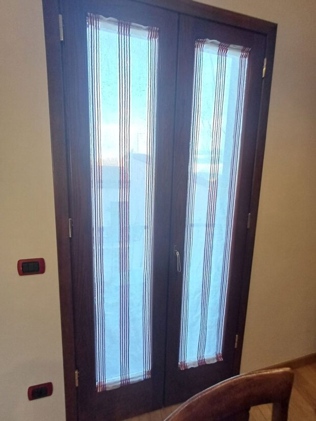 INFISSI NUOVI IN LEGNO CON DOPPIO VETRO E ZANZARIERE , PERSIANE IN ALLUMINIO ORIENTABILI, PORTE INTERNE ROVERE ARTIGIANALI.